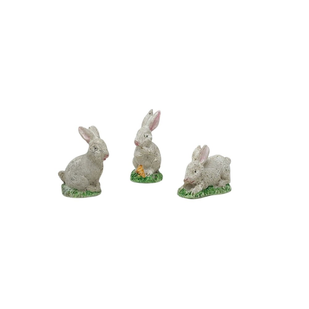 Set 3 Pezzi Conigli in Resina in Miniatura Animali per Presepe. Dimensioni: 2,5 x 1,5 x 3,5 cm. Tre modelli Assortiti.
