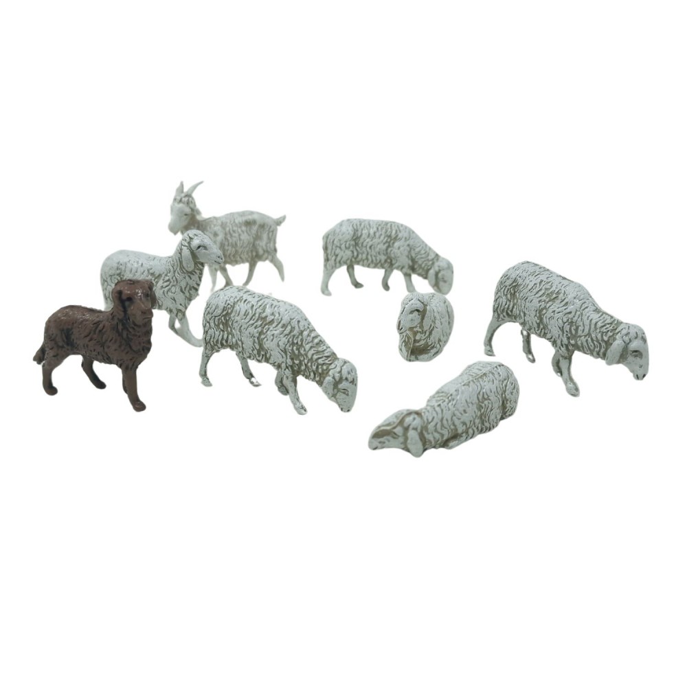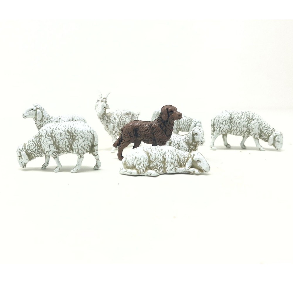Gruppo 6 Pecore e Cane Animali per Presepe SM1003