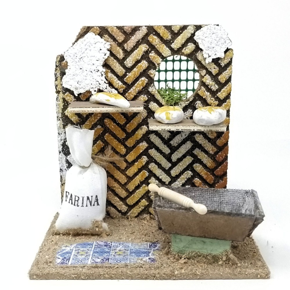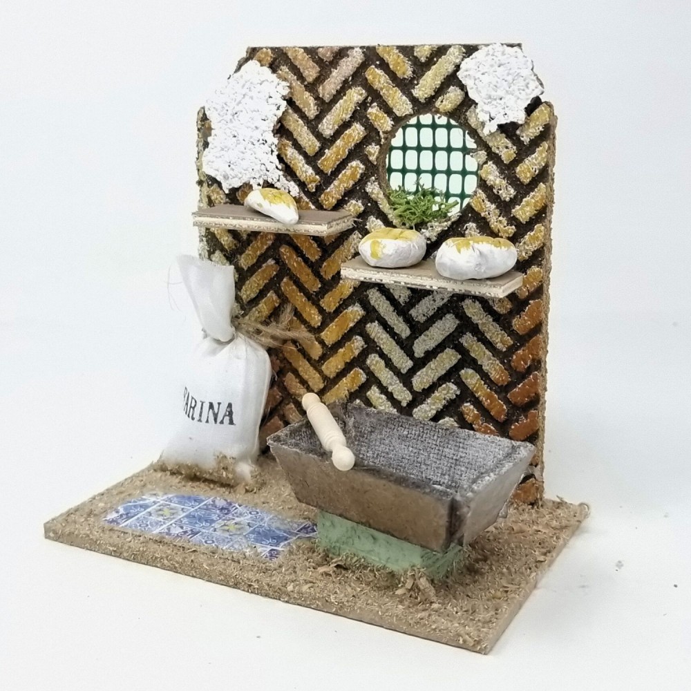 Il Panificio Scena per Presepe. Dimensioni: 14 x 9 cm, Altezza: 14 cm. Articolo artigianale.