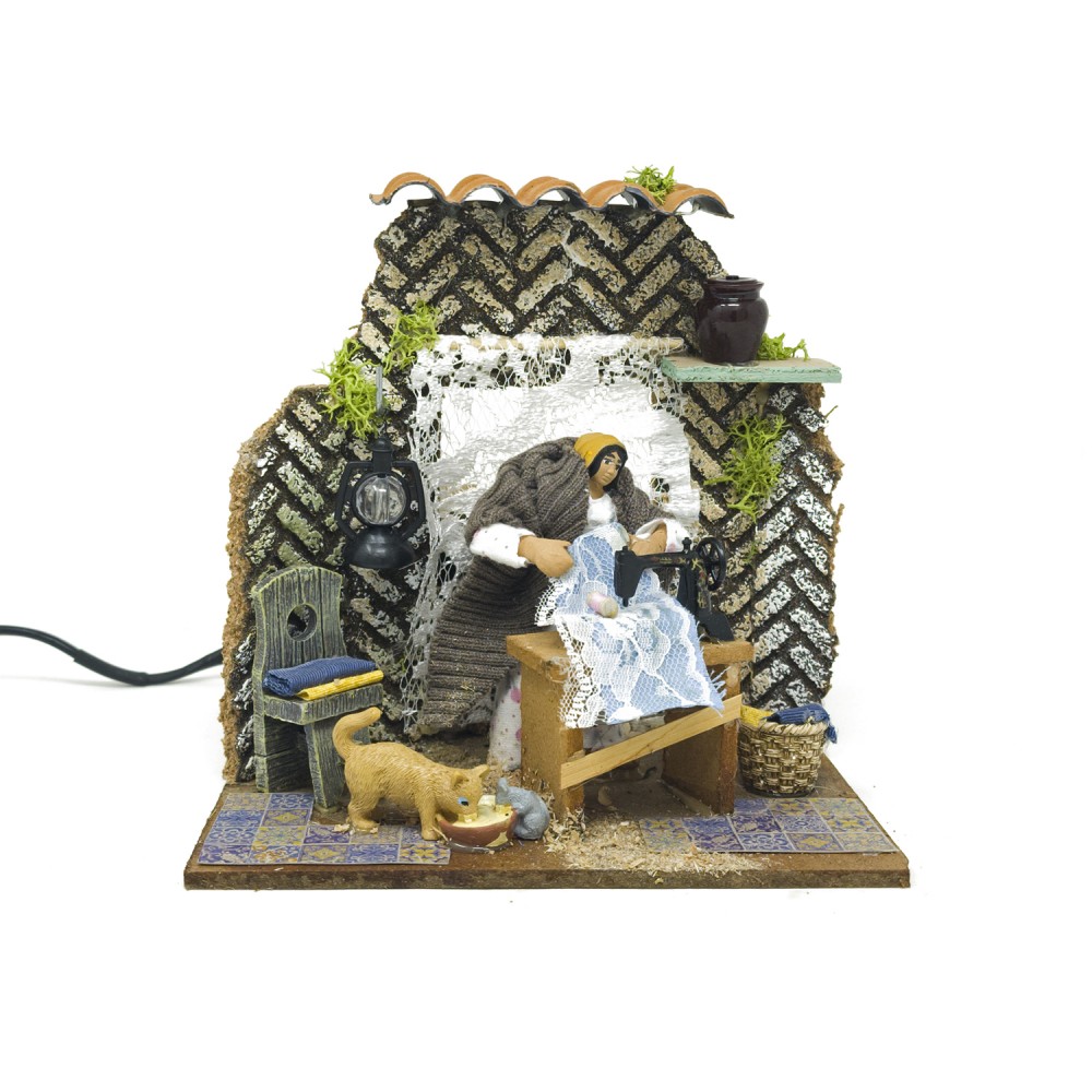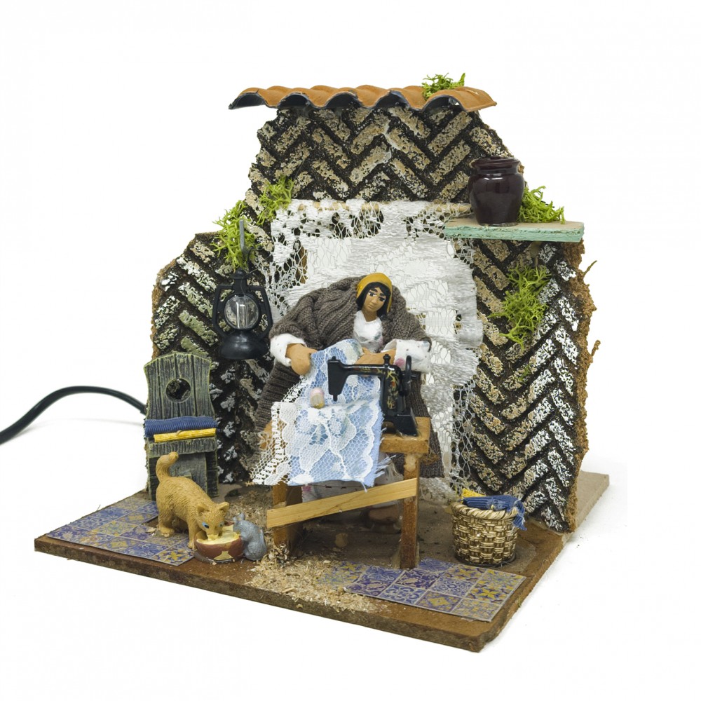 Questo elemento per presepe raffigura una donna che cuce con la sua macchina da cucire. Scorcio artistico di vita rurale per impreziosire il tuo presepe.