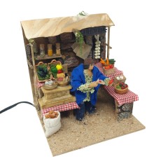 Elemento per presepe in movimento alimentato da un motorino silenzioso, la struttura è costruita con sughero, legno, muschio, tegole e terracotta.