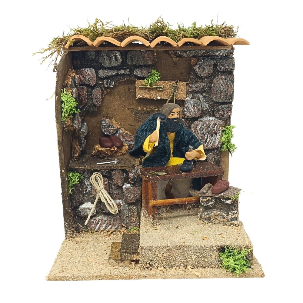 Questo elemento per presepe raffigura il calzolaio intento a svolgere il suo antico mestiere. Scorcio artistico di vita rurale per impreziosire il tuo presepe.