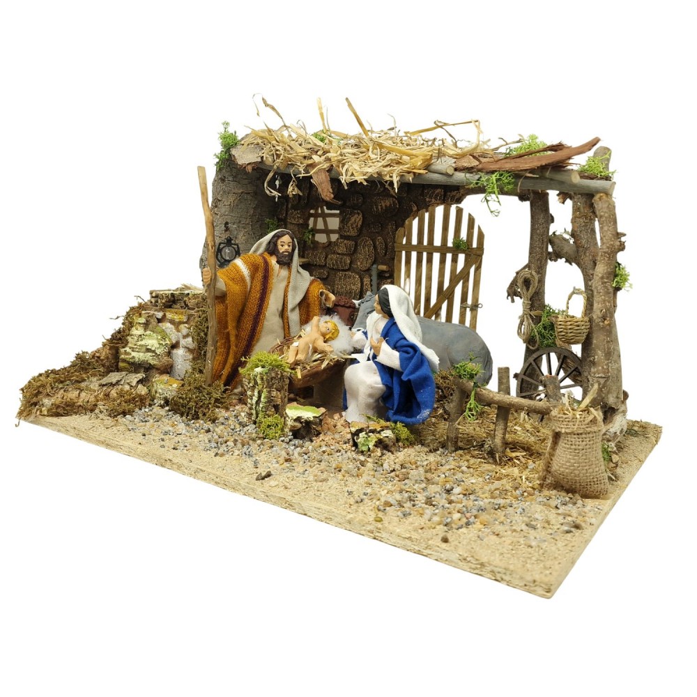 Questa raffinata scena della Natività con Grotta è un’opera artigianale di grande pregio, interamente realizzata a mano con cura e attenzione per ogni minimo dettaglio. Rappresenta il momento centrale del presepe cristiano, ovvero la nascita di Gesù, con una composizione che include la Madonna, San Giuseppe e il Bambino Gesù adagiato nella sua culla. La scena, che misura 50 x 30 cm, è pensata per trasmettere realismo, calore e spiritualità, ed è perfetta per arricchire qualsiasi presepe domestico o esposizione natalizia.