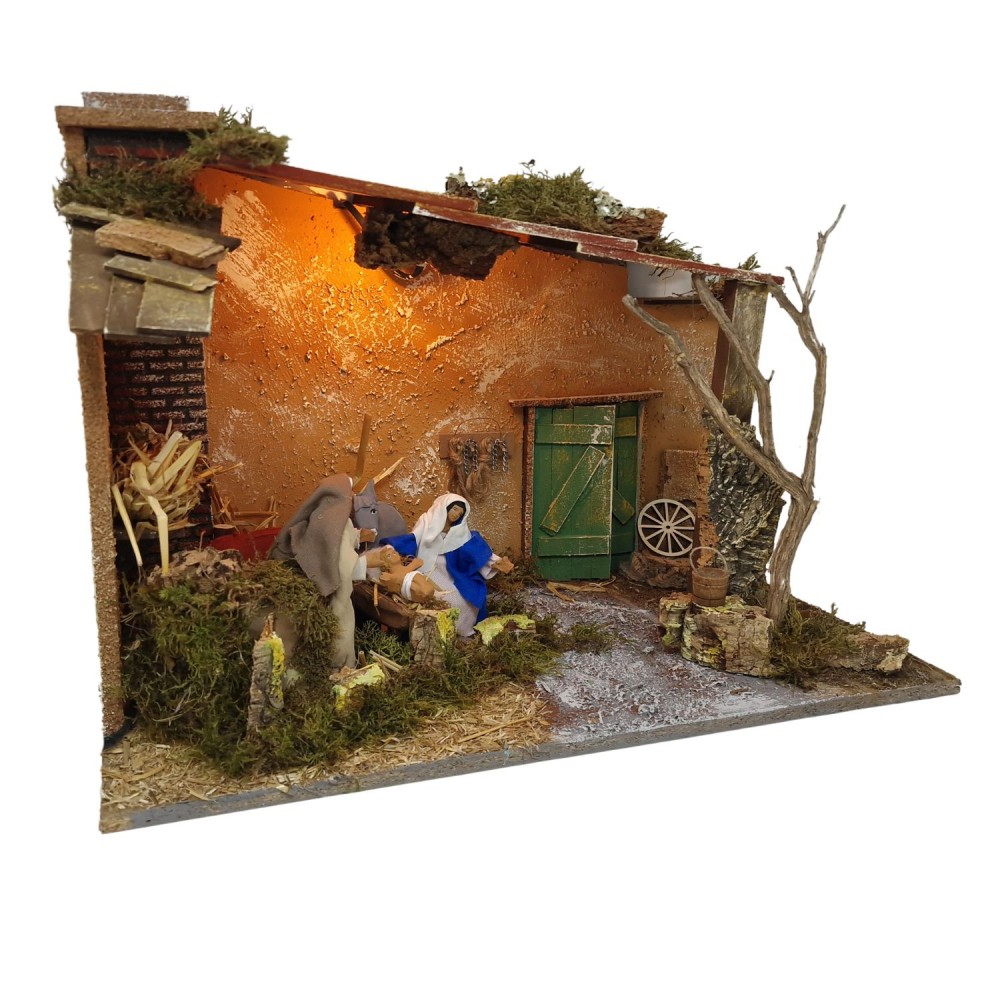 La grotta è illuminata da luci interne sapientemente posizionate per creare giochi di ombre e calore, mettendo in risalto i protagonisti della Natività e contribuendo a generare un’atmosfera intima e spirituale. L’illuminazione e il sistema di movimento sono alimentati tramite presa standard da 230V/50Hz, offrendo un funzionamento sicuro, stabile e pronto all’uso.